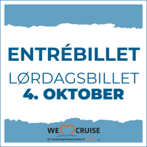 - Du skal møde op senest 15 minutter før ved Skibsbesøgsstanden ude på molen. Du skal først igennem check-in til We Love Cruise-messen – følg skiltene eller spørg en medarbejder for vej.
