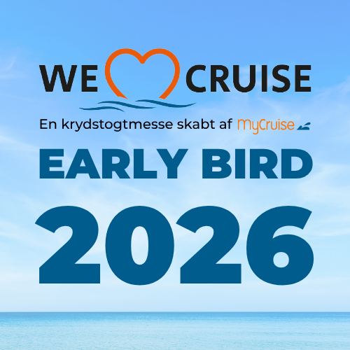 Du er i gang med at købe early bird entrébilletten til We Love Cruise 2026 – Nordens største krydstogtmesse, der finder sted i Terminal 2, Oceankaj, København.